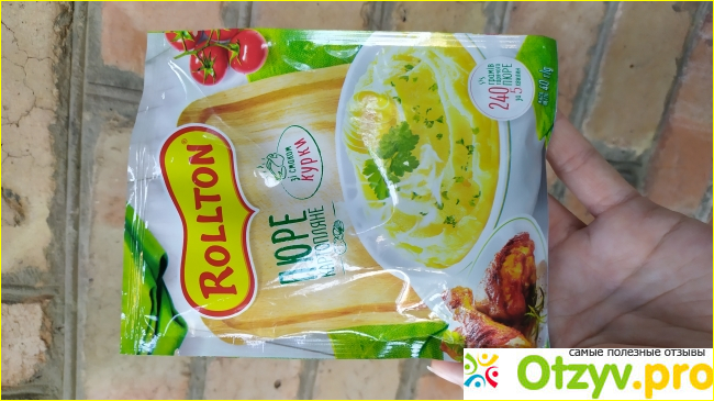 Не полезные совсем продукты быстрого приготовления, но иногда очень выручают когда кушать хочется, а приготовить нет возможности или времени. Неплохое по вкусу пюре картофельное быстрого приготовления Rolton со вкусом курицы. По стоимости вполне доступно, около 11 грн за пакетик.