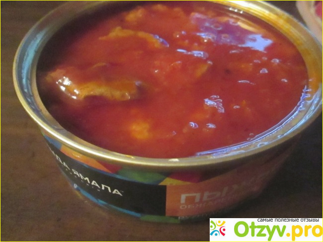 Информация о составе , все как и должно быть - рыба и томатный соус, плюс пряности