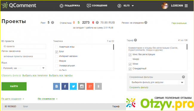 Но если вы хотите работать исполнителем, то для вас есть другой вариант. Тут вы будете находить задания по комментированию, оставлению отзывов, рецензий по знакомой для вас теме. Тут множество тематик. Я предпочитаю писать о фильмах и сериалах. Там этого добра достаточно. Вам нужно лишь зарегистрироваться на сайте и оставить там комментарий или отзыв. Притом регистрироваться можно с помощью социальных сетей, что значительно упрощает процедуру. Вам можно создать себе несколько аккаунтов, чтобы потом комментировать от разных людей. Это не запрещается.