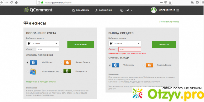 Заработанные средства можно выводить на "ВебМани" и "Яндекс Деньги". Минимальная сумма к выводу 100 рублей (без учета комиссии, например у "Вебмани" - это 0,8%). Деньги переводят честно, очень быстро. Обычно в течение суток.