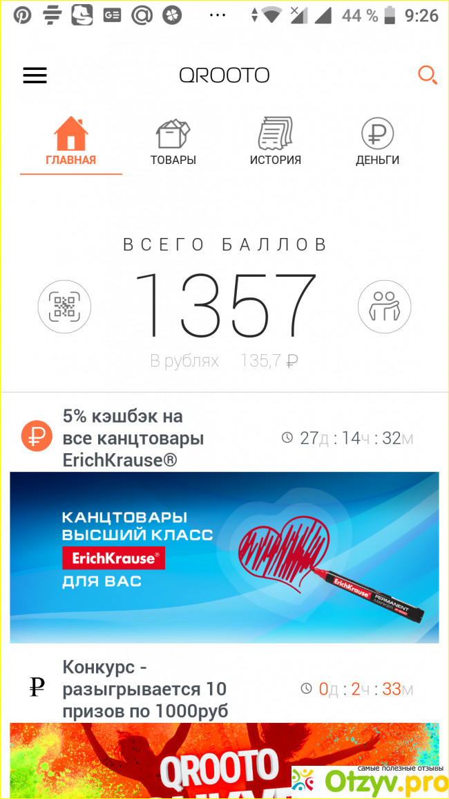 Про кешбек я слышала, даже есть карта с небольшим кешбеком, который начисляется на отдельный виртуальный счёт. Так что приложением с кешбеком меня не удивило. Про приложение Qrooto я узнала от знакомого по форуму frienddime.