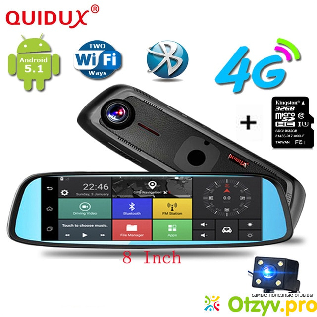 Устройство Quidux представляет собой: зеркало-автокомпьютер в ультратонком исполнении с парковочной камерой (пробовала несколько раз, супруг позволил - очень удобно и комфортно для меня).