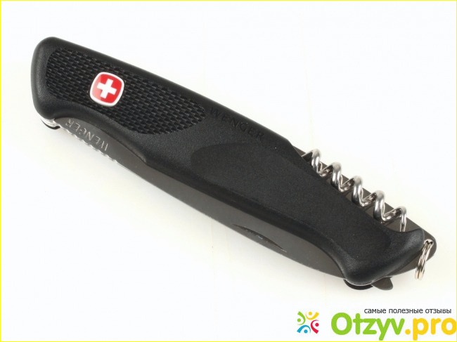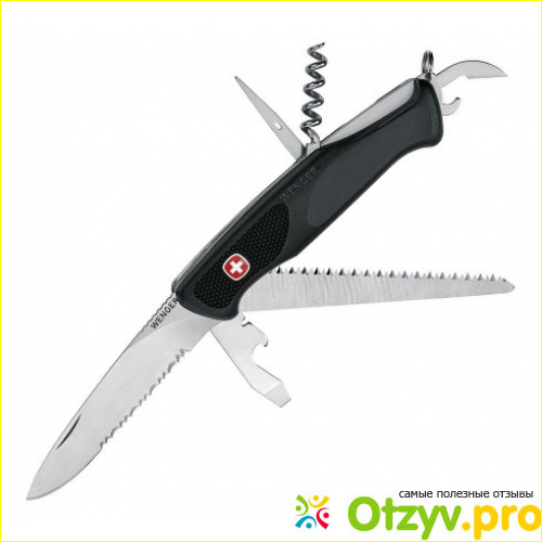 В отличие от Victorinox, WENGER имеет длинный клинок и действительно является ножом, а не маникюрным набором. Лезвие вполне острое, встречаются варианты с пилообразной режущей кромкой (у меня именно такой, за столько лет так ни разу и не точил!). Стопорится в рабочем положении. Небольшая, но замечательная пила. В походе легко пилили сучья толщиной в руку. Плоское шило, с отверстием, вполне годится для парусных работ (хотя в этом качестве лично не испытывал) Отвертка- ничего особенного, консервный нож- выше всяких похвал, пользуемся им даже дома, уж очень удобен в обращении. Нож собран весьма тщательно, никаких люфтов, дребезжаний и т. д.. Рукоять из хорошего пластика, несколько шершавого, надежно и комфортно сидит в руке. Одним словом, изделие- высший класс! У меня уже второй такой-же (первый уронил за борт), уже много лет. Конечно вещица не из дешевых, но ведь приобретается для любимого себя, и надолго, поэтому цена не играет первостепенного значения! Рекомендую всем!