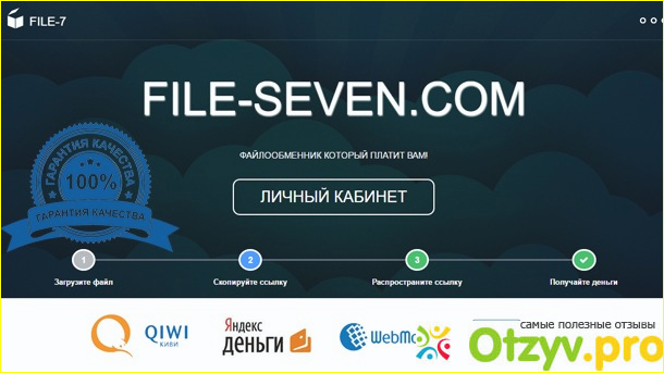 Пассивный доход у меня отлично идет с файлообменника File-seven, это сравнительно новый ресурс, который запустился весной прошлого года, собственно я один из первых на нем зарегистрировался и в настоящий момент у меня там свыше 1500 рефералов, также я решил ускорить данный процесс, создав сайт на эту тему, поэтому каждый день в мою команду вливается порядка 50 человек. Но сам я файлы туда не заливаю и не распространяю, а зарабатываю непосредственно на реферальных отчислениях.