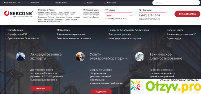 Основная цель Sercons – обеспечить соответствие продукции и услуг компаний международным и национальным стандартам качества. Сертификация гарантирует, что товары и услуги соответствуют требованиям стандартов надежности, безопасности и экологической совместимости. Является крупнейшей российской компанией, занимающейся сертификацией, охраной труда, промышленной, пожарной, экологической безопасностью, негосударственной экспертизой и другими сферами деятельности, требующими разрешительной документации.