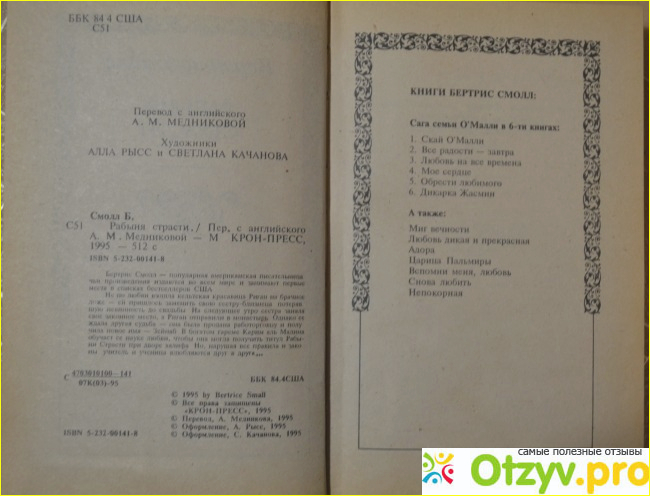 Обычно действие романов, которые я читала происходит либо в викторианской Англии, либо на одно-два столетия раньше. И должна признать, этот самый шаблон романов мне надоел до жути, поэтому я стала искать что-то новое. И однажды моя подруга дала мне почитать исторический любовный роман «Рабыня Страсти» американской писательницы Бертрис Смол. Бертрис Смол обладает своим стилем, и очень даже богатой фантазией.