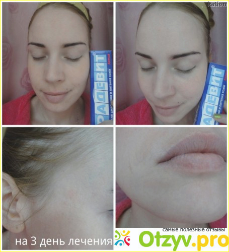 Мазь Радевит не имеет никакого неприятного запаха, она достаточно быстро впитывается в кожу, совершенно не оставляет никаких следов, не липнет и не скатывается. При этом, активно действующие вещества которые в ней содержатся, начинают мгновенно проникать глубоко под кожу и оказывает свое прекрасное восстанавливающее действие. Достаточно быстро с кожи пропадает сухость, исчезает шелушение, кожа обретает мягкость и красивой и здоровый цвет лица.