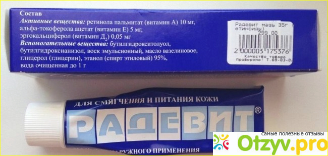 Которую можно купить, при желании, в каждой аптеке. Радевит используется в косметологии как неплохое средство от морщин и в других проблем кожи. Радевит чаще всего продается в виде мази, но реже можно купить и в форме крема. Что лучше, трудно сказать. Большинство женщин пробовали на себе этот средство, все таки в виде мази. А мазь эта, светло-желтого цвета на основе вазелина. Но лекарственный состав что в первом, что во втором случае одинаковый.