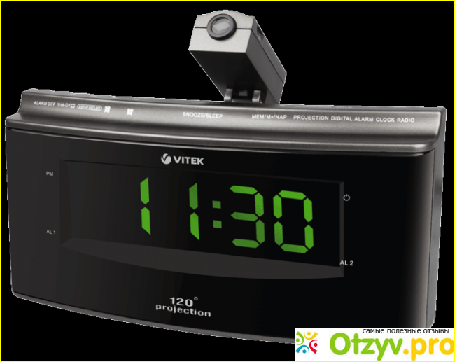 Также в часы встроен небольшой проектор через который время выводится на потолок или соседнюю стену.