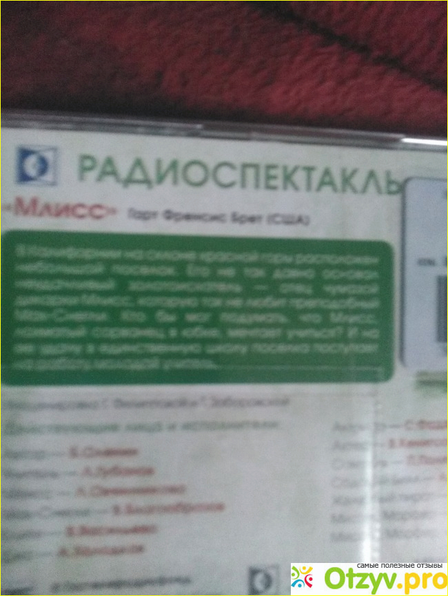 После прочтения, вернее прослушивания Алхимика, я увидела мпз диск с названием Млисс, Американского писателя Гарта Френсиса, Брета. Время звучания около 40 минут дальше идёт произведение детективов отрывки наших известных писателей, которые могу сказать честно я не слушала. О чем же идёт речь в этом рассказе:Речь идёт о девченке смуглой Млисс которая была живой и совершенно неуправляемой, она жила в небольшом посёлке который основал её отец -золотоискатель. Отец в результате неудач сводит счеты с жизнью и Млисс девочка подросток остаётся со всем одна. Но к счастью девченки в посёлок приезжает молодой учитель который сразу сумеет найти общий язык с трудной девочкой и даже берет опеку над ней. Млисс под его влиянием становится более послушной и мало того учится почти на отлично. Но вот незадача отак быстро прошло время, и Млисс уже совсем не девочка а взрослая девушка. Которая окончила школу. И она конечно влюблена в учителя. А какое решение примет он все расскажет мпз. Мне показался интересным этот спектакль, ну конечно он предназначен больше подросткам а не взрослым. А ещё понравилось муж сопровождение интересная песенка про Ветерок, песни из спектакля где была Млисс с учителем. Вообще считаю что великолепные актёры озвучили этот рассказ:Л. Губанов, В. Васильева, Л. Овчинникова, А. Холодков, П. Полев и др. Все они своим профессионал из мои улучшили этот мпз. Думаю что теперь я буду больше поклонником мпз. Мои племянники тоже нашли пользу в аудиокнигах и многие произ