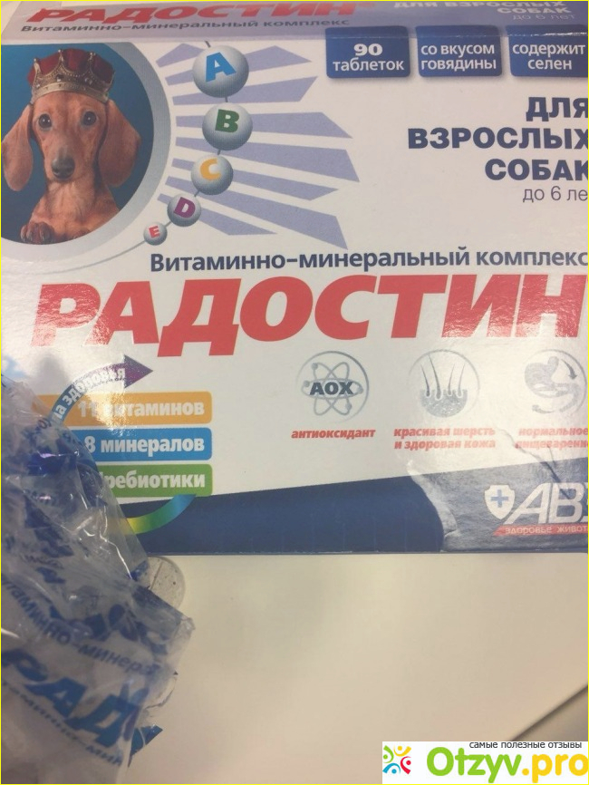 Чтобы укрепить его иммунитет и чтобы ранки побыстрее заживали, купила витаминный комплекс Радостин. В нём есть витамины, микроэлементы, травки для хорошего пищеварения, так что и укрепляет организм, и помогает спрвляться с последствиями мелких отравлений всякой гадостью, которую Хан хоть изредка, да отыщет в кустах. Продается Радостин в картонных коробочках, с пакетиком внутри. Не очень удобно таблетки в самом пакете держать, поэтому завела специальную баночку под них. На самом деле пакетик - это мелочи. В упаковке целых 90 штук таблеток и стоят они копейки. Вот это уже важно и здорово. Да и Хан Радостин грызет с удовольствием. Даю Радостин Хану уже два года и результат радует. Регенерация у Хана повысилась реально - заживает на нём теперь всё уже не просто как на собаке, а как на очень здоровой собаке. В общем, очень довольна.