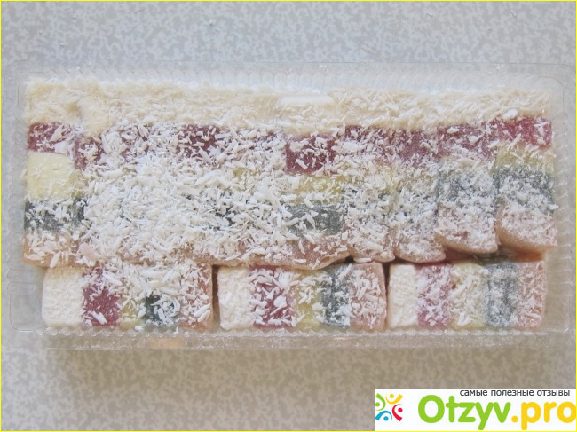 Упаковка у Рахат-Лукума прозрачная, поэтому без труда можно разглядеть все ее содержимое.