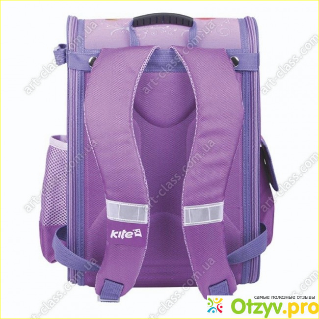 Из минусов могу сказать замоу пластиковый, и на первой неделе носки, когда мальчики упражнялись на прогулке в длинне прыжков через ранцы, один приземлился к нам на ранец и замок сломался. Дочка в слезы я в растерянности, выручиил нас папа. Ранец отремонтировал. Все как камень с души снял, а то пришлось бы покупать новый. Сейчас ранцу второй год, замок держится. После хорошей носки (так сказать), дочурочка оторвала сеточку кармашка практически насовсем. Ну, не знаю как умудрилась. Снизу ранец имеет пластиковое основание. Хорошо ставить рядом с партой. В кармашек сбоку (который на молнии) дочка кладет кошелек, а в соседнем обычно бутлочка с водой (была). Молния с интересным бегуночком, уобно открывать и закрывать. Ладошка и пальчики не срываются. Каркас крепкий изменений в носке - никаких. Прекрасно стирается, стираю обычной щеточкой и мыльным (жидким порошком и т. д.) раствором. Сохнет тоже быстро. Обычно стираю на зимние каникулы и на начало летних. По крышечке сверху пришиты пайетки. Ни одна не оторвалась. Пришиты очень даже крепко. Они свет хорошо отражают, и красиво заодно. На лямках есть тоже полоски со светоотражателями. По одной на обеих. Лямочка сверху обычная. До сих пор жива, нигде не порвалась, не распустилась.