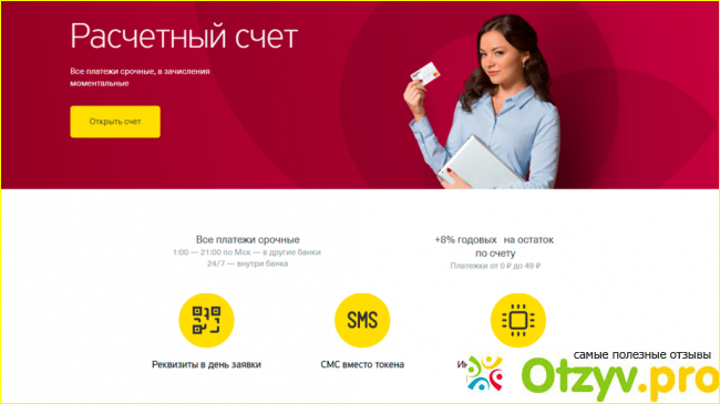 Расчетный счет обычно открыт на 1 день Длинный день оплаты Мгновенная отправка платежей на счета других банков с 01:00 до 20:00 по московскому времени Текущий счет Тинькофф-круглосуточно До 6% в год от остатка на счете Начисляем проценты на остаток текущего счета. Доступный овердрафт. Платить подрядчику, даже если на расчетном счете недостаточно денег. Персональный менеджер на стороне-быстро решит все вопросы в чате или по телефону. Интеграция счета с бухгалтерским учетом. Простая интеграция в текущие счета с 1С, контур.