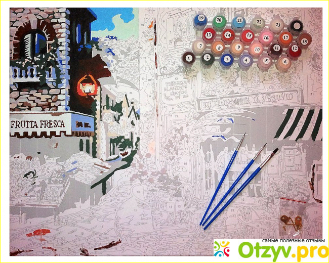 Придя домой, я подальше отложила все свои дела и занятия и приступила к самому интересному. В небольшой коробочке находится сам холст, краски по номерам(гуашь), кисточки и инструкция (не знала, что к такому она требуется, ну да ладно). Как и все нормальные люди, первым делом прочитала инструкцию, мало что оттуда поняла, но сама разобралась. На тонком холсте напечатана картина и каждый её фрагмент разбит на элементы, которые пронумерованы в соответствии с номером на крышечках гуаши. Приготовив палитру (что бы можно было опробовать все краски или смешать, если это понадобится). Так как я очень капризна и придирчива в плане рисования, я приготовила свои профессиональные краски и принялась к работе. Сама суть этого занятия, наверное научиться смешивать краски(а без шуток, это очень увлекательное и интересное занятие). После нескольких минут моих усилий, уже было более-менее виден результат. Так как я ни ела, ни пила пока работала над этой картиной, мне хотелось её закончить, не откладывая на завтра. Спустя наверное часа два, я её закончила. Моему счастью не было придела. Мама глядя на мое творчество, на следующий день пошла и скупила все картины, которые её понравились, теперь сидит вечерами - рисует.