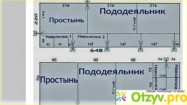 Так же меняется размер наволочки. Очень внимательно изучаем схему и выбираем нужный вариант.