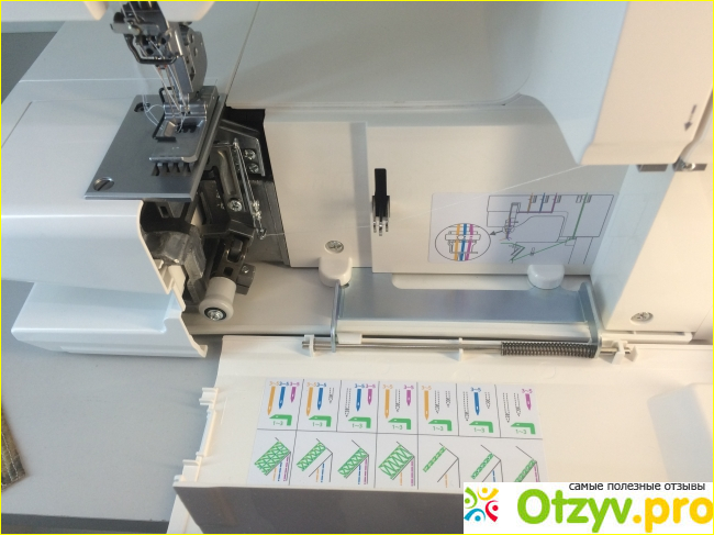 Разберется, как говорится, даже " школьник" Полная заправка машины не займет у вас больше 5 минут. Быструю скорость вдевания в петлитель обеспечивает специальное приспособление, а игольная заправка ничем не отличается от заправки в обыкновенной швейной машинке. Специально для " неопытных" справа на панели машины нанесен рисунок с подсказками о рекомендованном натяжении каждой нитки в машине и как будет выглядеть шов, если вы уберете одну из игл. Честно говоря, перестраивать машину с одного шва на другой легче простого. Для этого всего лишь нужно убрать одну из игл. Некоторые совершают ошибку убирая нить из иглы, при этом оставляя иглу на месте. При такой оплошности вы гарантированно получите не только дырки в ткани, но и возможные пропуски да и сам шов будет смотреться хуже. Что касается " капризности" машины к тканям и ниткам. Сразу оговорюсь, любая бытовая " распошивалка" довольно требовательна к "расходникам", особенно к ниткам. Как правило, настроена на заводе она уже на европейский стандарт ниток(Madeira, Miller и тд)и поэтому используя бобинки за 20 рублей, вы вряд ли получите хороший шов на капризной ткани. Даже возможно и регулировка не поможет достичь идеального результата. При этом если шить обычный трикотаж или хб или что-то потолще, проблем не возникает. Тут вообще как бы дело не в машине, дело в тканях, каких только сейчас нету, с пропиткой и так далее. На собственном тесте, при использовании немецких ниток и игл машина справляется практически с любыми тканями без проблем. Во всяком случае, не стоит забывать, что существует довольно много стабилизаторов для тканей, можно использовать их.