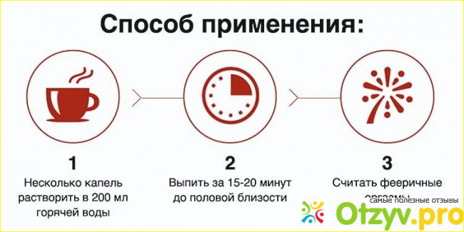 Примерно спустя неделю после заказа на сайте я получила посылку, в которой нашла небольшую коробочку розового цвета с точно таким же рисунком, как был на сайте. Внутри находится флакончик с удобным дозатором и инструкция по применению. Ее советую внимательно прочитать, так как принимать капли нужно очень осторожно, ведь эффект действительно практически мгновенный!