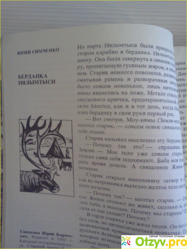 Потом всё налаживается затерявшиеся на севере мужчины попадают домой и дарят Нялынтыси подарок - его бердянку. Она становится татемом для него, приносящим удачу. Далее описывается уклаж кочевого народа и их традиции. Для себя я выделила плюс, что "Берданка Нялынтыси" пополнила мой словарный запас новыми словами, расширила кругозор.