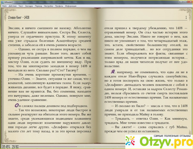 Перевод нормальный, без претензий. По сюжету Майк Энслин, писатель, зарабатывающий на книгах о призраках, пытается попасть в номер «1408» отеля «Дельфин» с целью написания книги о нём. Находится он на 13-м этаже, переименованном в 14-й. А сумма цифр 1+4+0+8=13. Это должно добавить рассказу мистики.