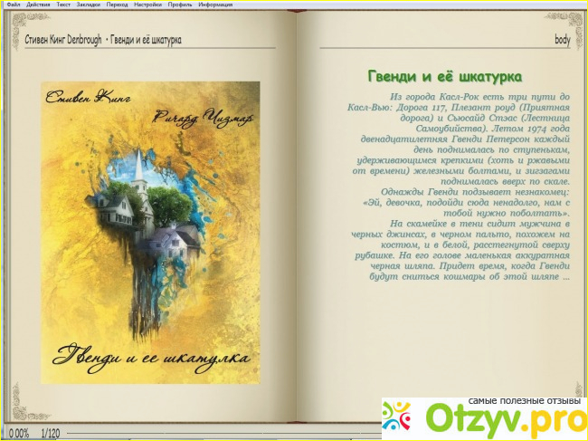 Состоит она из 120 электронных страниц. В предисловии написано о встрече девочки Гвенди и незнакомца, его подарок всё же стал неожиданностью. Особенно описание этого дара. Шкатулка таит страшные секреты, беречь их очень сложно, особенно ребёнку.