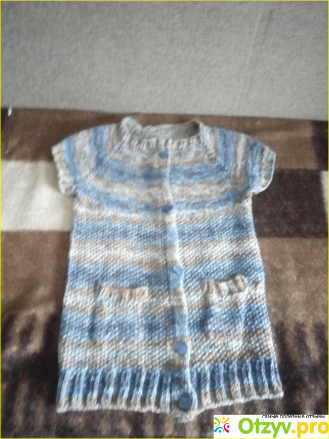 Конечно вы знаете, как всегда, прежде чем вязать горловину, я набираю петли из других ниток. Оставляю небольшой конец. Перехожу на рабочие нити из чего буду вязать изделие. Начинаю вязание реглан сверху. Вяжу такой же простой рисунок. На лице вещи-лицевыми, на изнанке-изнаночными петлями. На спине делаю укороченные ряды, чтобы наша жилеточка не сползала вниз. Немного два-три рядочка. Впереди можно вывязать выточки. Вяжу, как обычно полочки справа и слева. По кругу. Одновременно по пять например петелек резинку 2х2 по краям изделия, проделываю отверстия для пуговиц на определенном расстоянии, на одной правой половинке. Кофточку вяжу до подмышек. Примеряю предварительно на ребенке свою работу. Делаю кармашки. Затем меряю длину. На горловине распариваю другие ниточки. Петли спускаю на спицы, вяжу резинку 2х2. Несколько рядков. Заканчиваю вязание обычным способом. Все работа закончена. Пришиваю пуговицы. Отдаю, полученную вещицу в руки. Пояс или кулиску дочка не захотела, чтобы я связала внученьке. Тепленькое, удобненькое, акриловое изделице носит моя любимая красоточка. Все довольны.