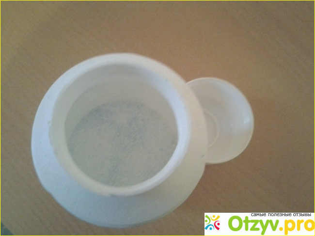 Соль белого цвета с голубыми крупинками. При растворении вода становится бледно-голубого цвета. Кожу не окрашивает.