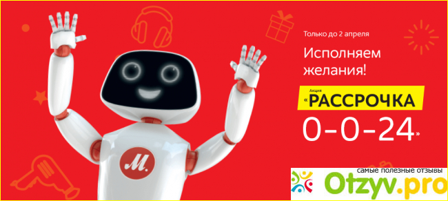 Воспользовался рассрочкой в М. Видео для покупки техники и остался действительно доволен удобством и выгодой этого решения. Главное достоинство — программа 0-0-24, которая позволяет приобрести дорогие гаджеты без переплат и первоначального взноса, растянув платежи на срок до двух лет и хорошие скидки в виде кэшбека до 50%.