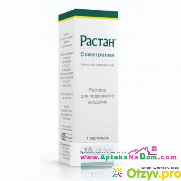 соматотропным гормоном. Рекомбинатный-значит получен путем применения генной инженерии. А слово соматотропный-означает, что этот препарат активизирует рост и размножение клеток. Предназначен для подкожного введения, выпускается в различных объемах-но чаще в пятимилимитровых капсулах. в которых находится три миллилитра препарата. Упаковка обычно картонная. Препарат выпускается либо в картриджах. либо во флаконах.