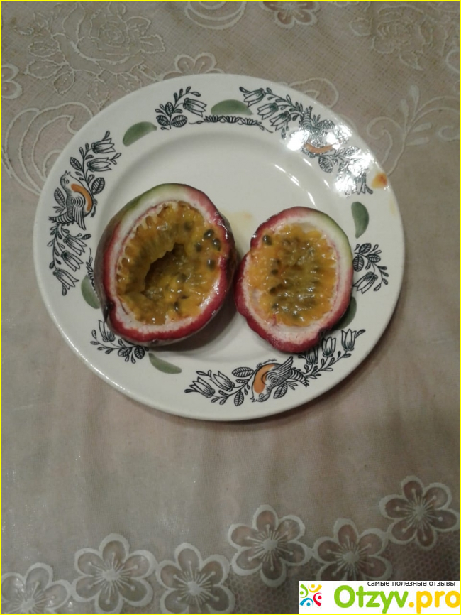 Тропическое, полезное, непривычное чудо, семейства Страстоцветы. Другое название «Пассифлора съедобная». Растет на прочных лианах длиной около десяти метров.