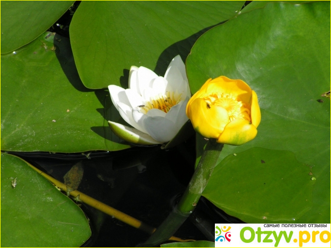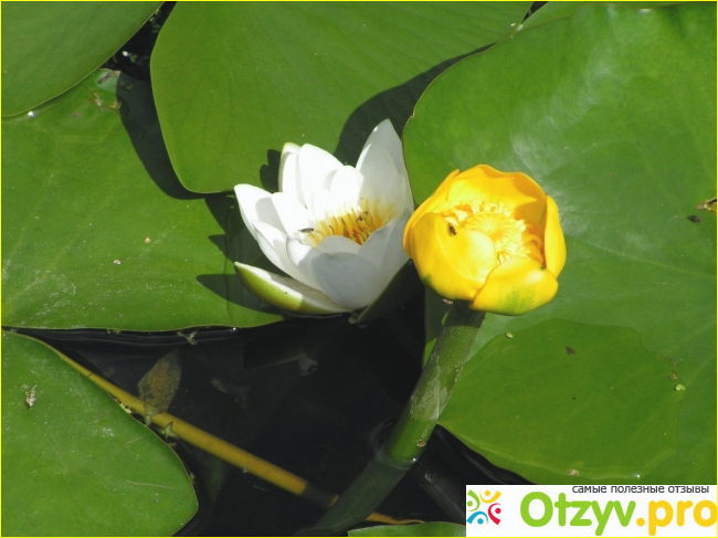 Растение "Желтая кубышка и белая кувшинка (водяная лилия) |