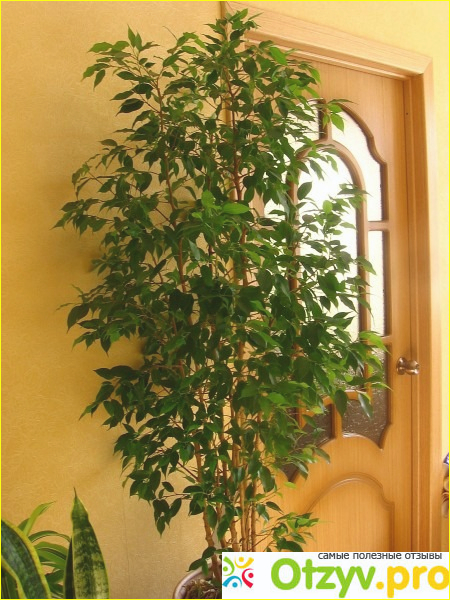 Кроме этого фикус очень декоративен, напоминает деревце. Растет очень быстро, у меня полутораметровое дерево прибавляет по полметра за летний сезон, приходится регулярно стричь.
