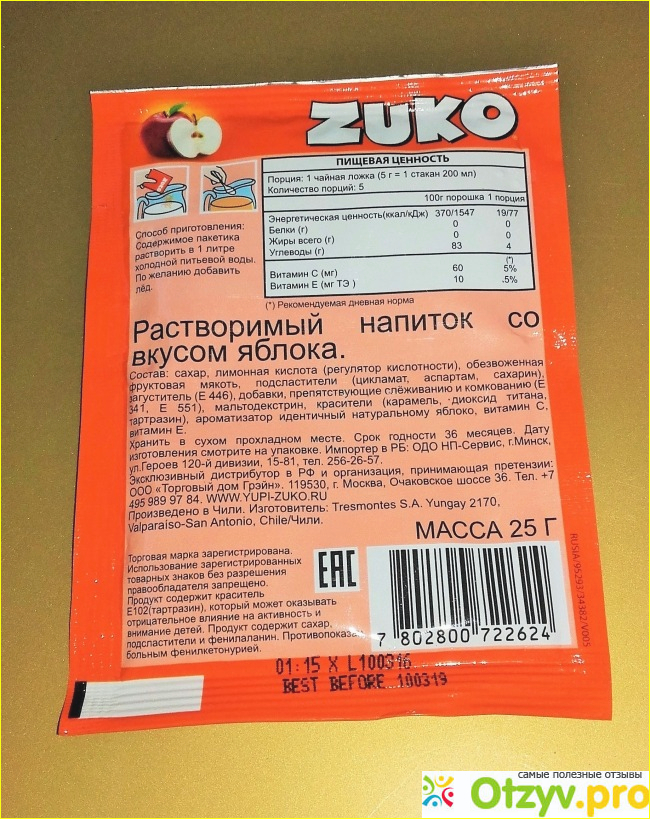 Плюс этого напитка в том, что он утолял жажду, особенно летом! Мы , дети разводили его, разливали в 1,5 литровые бутылки и охлаждали, брали его везде с собой! А минусом его что у нас окрашивались языки! Еще мы очень любили есть его сухим! Напиток конечно я считаю вредным, но иногда такой гадости именно хочется! Вот такой напиток. Разводить его легко просто добавить воды по рецепту и все наслаждайтесь вкусом!