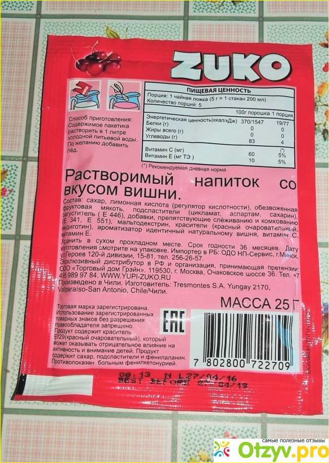 Растворимый фруктовый напиток Zuko со вкусом вишня |