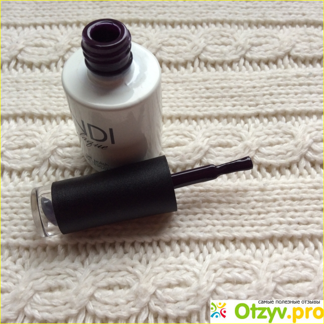 Кисть достаточно удобна, несмотря на то что она немного длинная. Она имеет плоскую форму, что мне очень нравится, так как она набирает продует без излишек и очень легко отжимается об горлышко бутылочки. От лёгкого нажатия кисть хорошо раскрывается, позволяя перекрыть полностью ноготь. Она подстрижена ровно, ворсинки достаточно тонкие. Набита она плотная.
