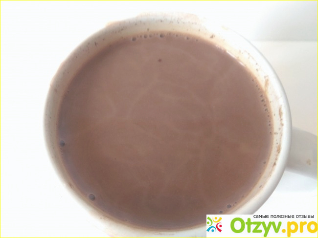 Консистенция больше похожа на какао чем на горячий шоколад. Напиток можно употреблять с выпечкой и тяжести в желудке не будет.
