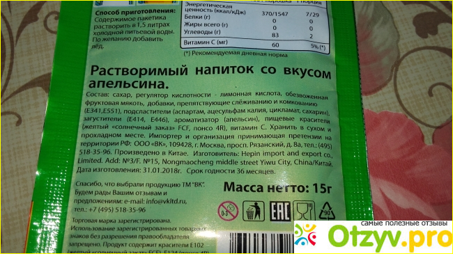 Если брезгуете, то продолжайте верить рекламе и приобретайте разные любимые сады и так далее, но я вам открою секрет. Жидкое содержимое тех прямоугольных коробочек на самом деле состоит практически из аналогичного фруктового коктейля. Правда в данном случае почему-то оно изготовлено в Китае, а подписано русскими буквами. Явно чуваки делали на заказ. Пять баллов.