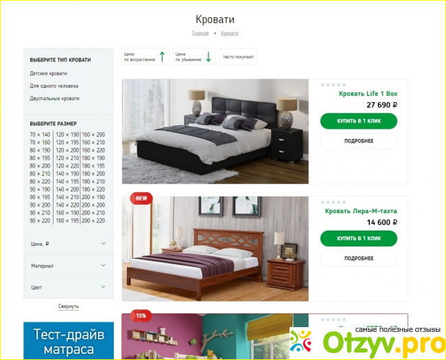 Раз уж в первую очередь мы решили приобрести матрас, то я зашла в соответствующий раздел.
