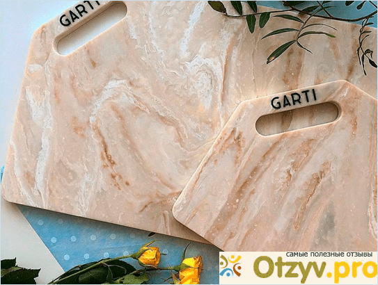 Многие покупатели оставляют отрицательные отзывы о том, что их обманули: они надеялись купить разделочную доску из натурального камня. Но это неразумно: после использования ножей на каменной доске их пришлось бы регулярно перетачивать, это стоит учитывать при покупке.