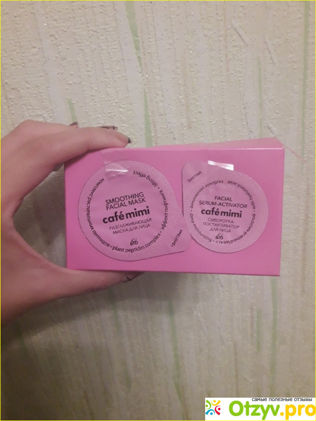 В этот раз я оценивала разглаживающую экспресс-маску для лица Cafe mimi. Представлена она во многих магазинах масс-маркета . Средство рассчитано на одно применение, но мне его хватило на несколько. Сам флакон спрятан в картонную коробочку.
