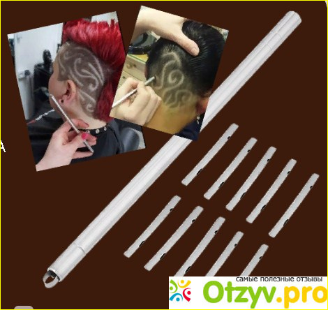 Работа с бритвой не составляет сложностей. Режущей кромкой является только одна сторона лезвия. Благодаря установке полотна на разную глубину, получают полоски разной ширины. Сбривает волосы Разор легко. Сильно давить для получения узора не нужно.
