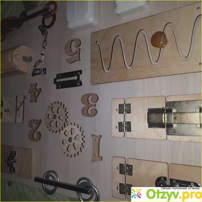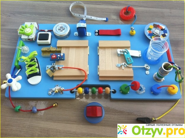 Это доска на которой прикреплены крупные детали, такие как провода, выключатели, розетки, замочки, шнурочки и все что может завлечь ребенка вокруг него только на вот такой доске в виде игры. Это позволяет маме выкроить для себя немного времени, а ребенку это интересно и для развития помогает, а также развивает мелкую моторику рук и логику, так как такие бизиборды могут быть дополнены всяческими лабиринтами и фигурами, цифрами и буквами, цветами и подсветкой.