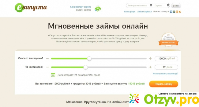 Добрейшего времени суток, дорогие читатели. Сегодняшний отзыв я хотела бы посвятить сервису займов онлайн под названием Екапуста и рассказать вам всю правду о нем.