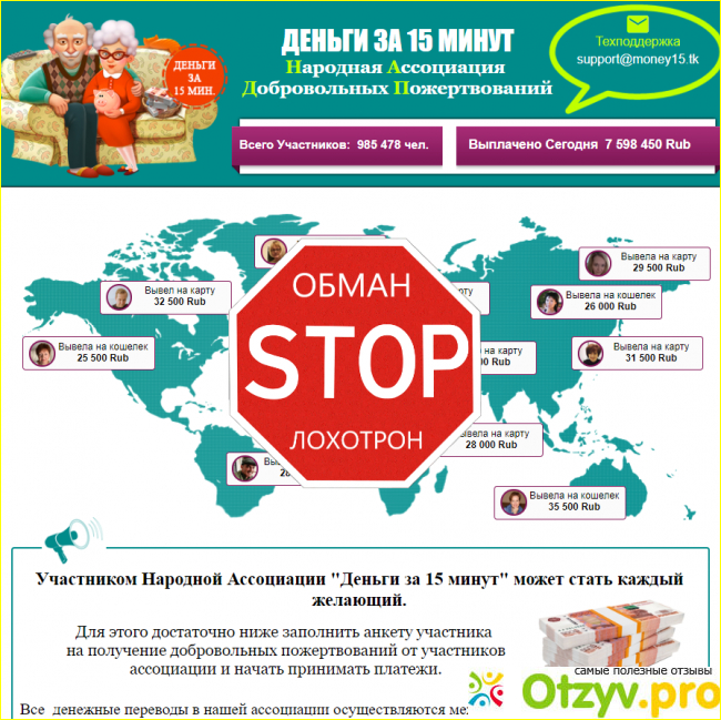 Деньги за 15 минут! Народная Ассоциация Добровольных Пожертвований! Лохотрон, Обман и Развод!