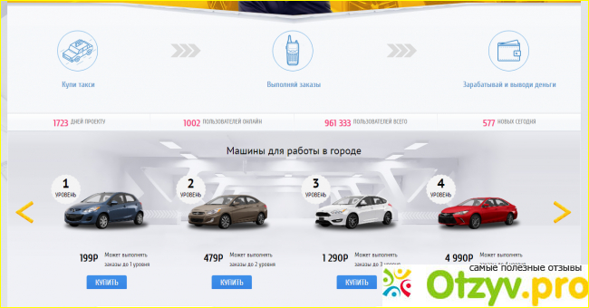 Для начала вы должны будете зарегистрироваться в проекте, после чего вам будет доступен личный кабинет. Тут вам предложат купить автомобиль, на котором сможете зарабатывать деньги.