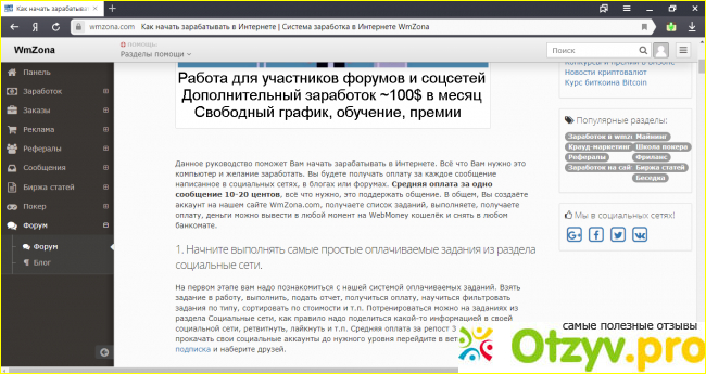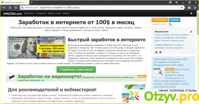 Данный сайт предлагает быстро заработать в интернете, именно выполнять оплачиваемые задания, самое простое что нужно делать. Для этого необходимо иметь компьютер, интернет и естественное желание работать. Обещают что будем получать оплату за просмотры и за посещение сайтов, написании в блогах и в формах, и другое. Чтобы начать зарабатывать на данном сайте, необходимо пройти регистрацию, для этого нужно создать аккаунт. И в дальнейшем получите список заданий, которые будем в последующим выполнять. Выводится на WebMoney кошелёк, что очень привлекло внимание. Когда впервые зашла на данный сайт, бросился в глаза подзаголовок, что заработок в интернете от 100 долларов в месяц, плюс ко всему имеется свободный график, ещё обучение.