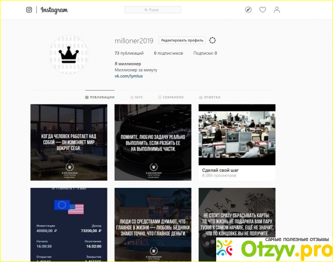 Хочется мне доказательств, что передо мной действительно миллионер, а не болтун какой-то. Но что я вижу, сборник обычных цитат, которыми кишат социальные сети и всего 20 подписчиков. Не густо, мелковато работает мошенничек.