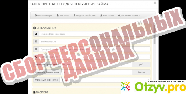 Опасность проекта zaim-time ru выявляется уже на моменте регистрации. Вы должны заполнить анкету, в которой указываете свои паспортные данные и СНИЛС. Оставление своей личной информации может вам дорого стоить, ведь мошенники найдут, как её применить. Скажем, если вы оставите сканкопии документов аферистам, они смогут взять на ваше имя кредит. Только уже на гораздо более внушительную сумму. Только вы этих денег не увидите, а отдавать кредит придётся вам… Кроме того, мошенник может продавать базу с вашими личными данными компаниям, которые потом будут рассылать вам рекламный спам.