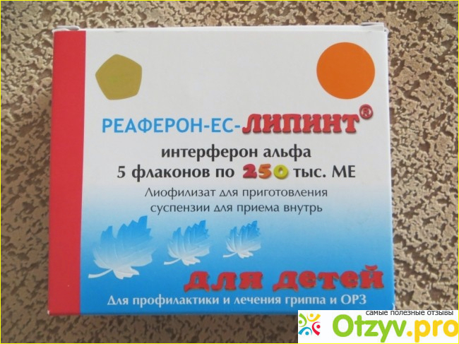 Я тоже решила дать сыночку Реаферон-ЕС-Липинт, в аптеке имелся и детский вариант этого препарата по 250 мг, это не таблетки, а раствор реаферона в ампулах, в упаковке их пять штук.