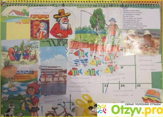 Так, однажды мы взяли старый календарь на картонной основе и начали постепенно мастерить из него книжку в картинках на английском. Сын принимал активное участие в создании сего шедевра. Мы вместе выбирали картинки, я из вырезала, наносила на них клей, а ребенок потом клеил и ласково так приживал пальчиками картинку. Страницы в книжке решили разбить по тематикам, среди них, продукты питания, животные, времена года, транспорт.